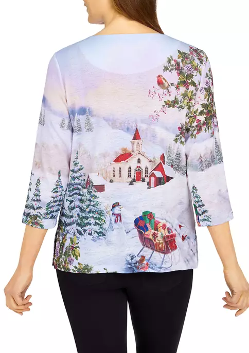 Ring in the holiday season with this classic scenic holiday print knit top from Alfred Dunner. Featuring traditional Christmas scenery, this top will have you ready for any occasion.