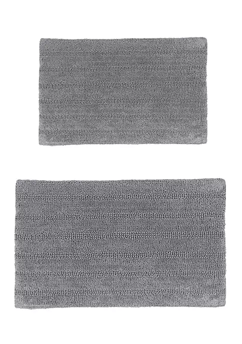 Knightsbridge Diamond 220 GSF Non Skid Back Bath Rug Set – 2- Piece – 17×24 and 21×34″, Silver