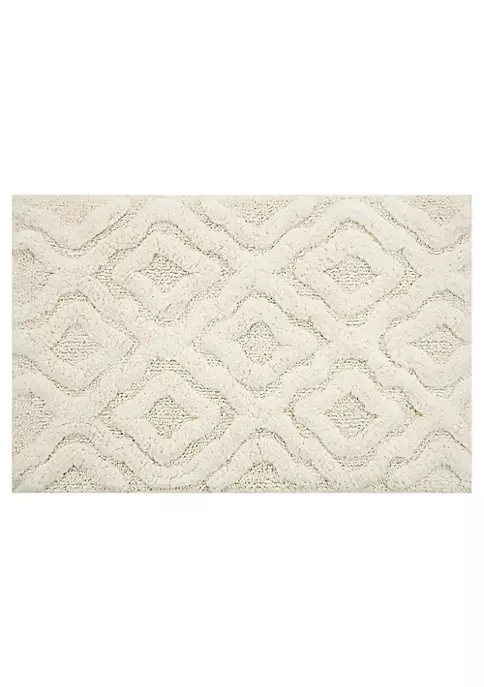 This unique all over sculptured bath rug is made of 100% soft plush cotton and is super soft to the touch with a dense lush pile. It has a non-skid back and is extremely absorbent and functional. The beautiful range of contempory colors will add an elegant look to any bathroom decor. Available Size: 24×40″. Color: Ivory.