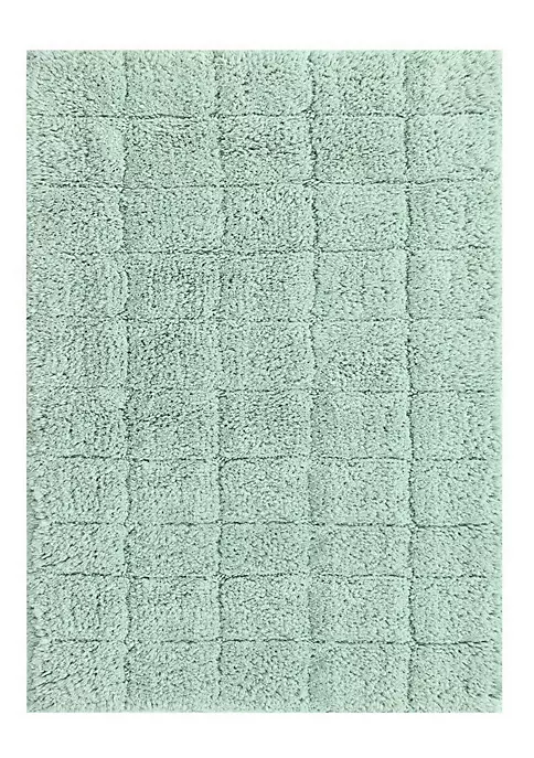 Luxurious and super soft, this cotton bath rug with a non skid back in a block design is a fine addition to your bathroom décor. The densely plush pile is fantastic for sinking your toes into while you’re getting ready to start your day. Product Size: 21 x 34. Product Color: Aqua.