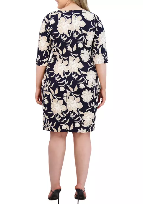 Flaunt your figure in fun florals with this side tie sheath dress by Robbie Bee.