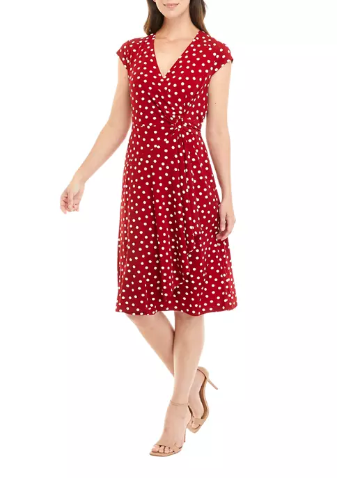 Pretty polka dots punctuate this Minnie Mouse-inspired dress from Robbie Bee, enhanced with short cap sleeves and a crossover V-neckline.