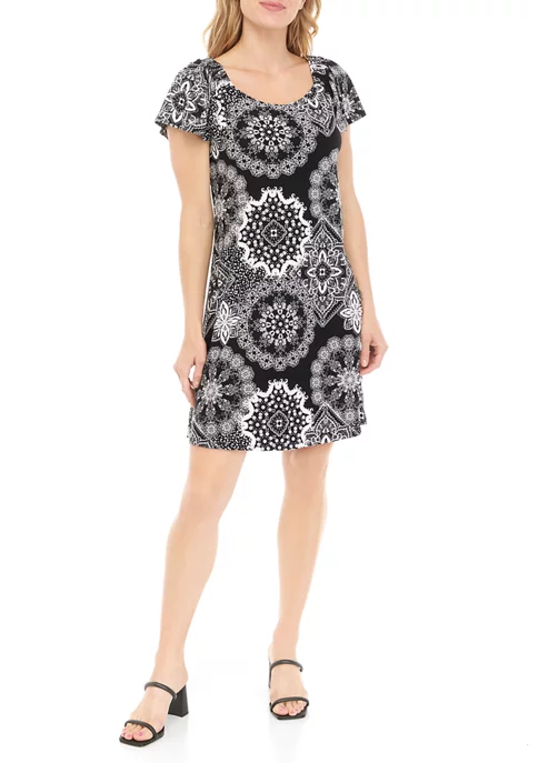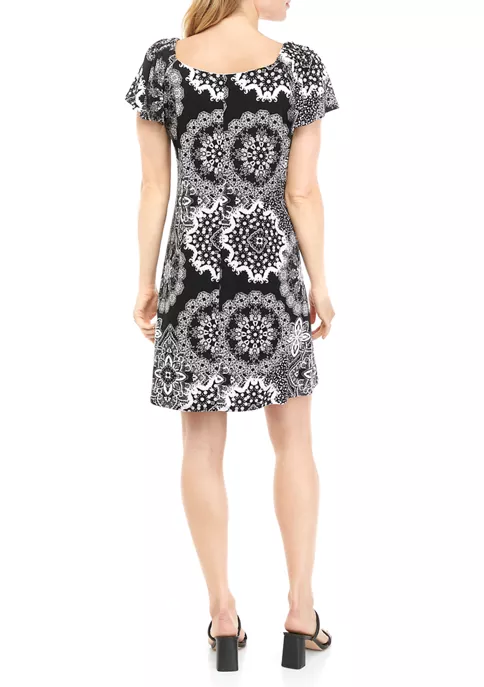 A marvelous medallion print adds modern flair to this flattering A-line dress from Robbie Bee.