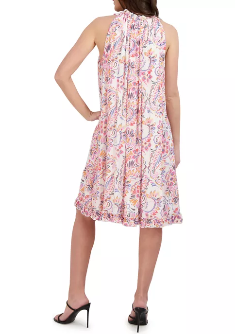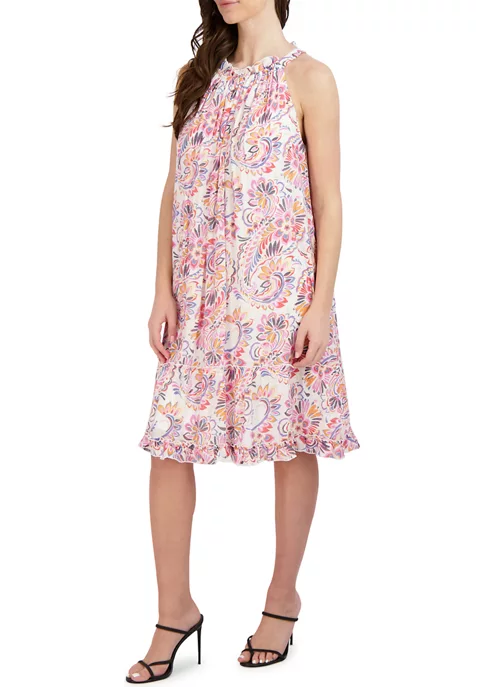 Traipse and twirl through the day in this lovely halter dress from Robbie Bee, filled with a pretty paisley print and finished in a flounce hem.