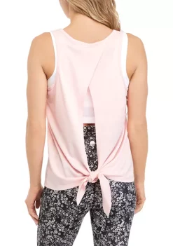 Space-dyed stripes strike on this open tie-back tank from ZELOS that’s perfect for keeping it stylish while working a sweat.