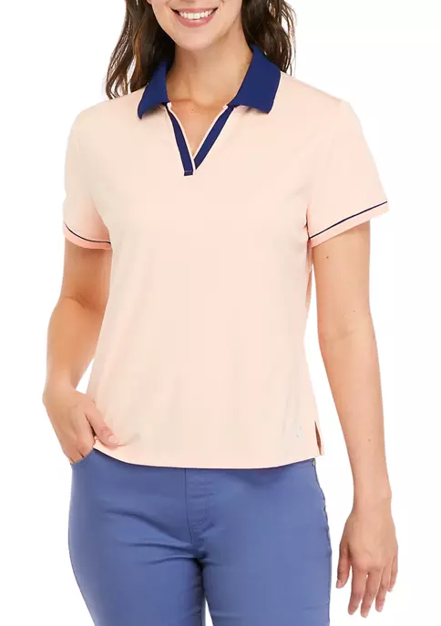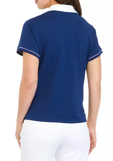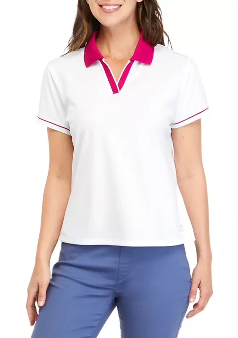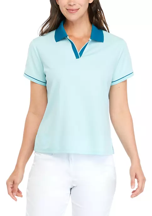 Crafted from durable polyester, this short sleeve polo from ZELOS boasts a classic silhouette that pairs well with your favorite trousers or jeans.